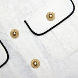 A contrast collar adds preppy detail to this white lace shirt. Tailored to flatter the form, match its gold buttons with our statement earrings and wear with jeans to go from desk to dinner.