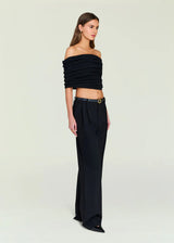 Off-the-shoulder, knit crop top. Shown here in Black.