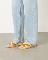 Priscila is a flat sandal whose main feature is its raffia work. With a slightly squared toe and straps that intertwine over the forefoot, they have a delicate, current look. That handmade complement to those mediterranean summer evenings.
