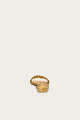 A metallic leather sandal featuring a hard knotted netted toe strap.