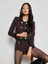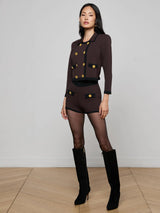 The Lumi micro short brings polished appeal to a playful silhouette. Designed with a contrast trim and gold button accents, they balance comfort with refinement. Style with its coordinating jacket, or pair with a tank, blazer, and strappy heels for an unexpected night-out look.
