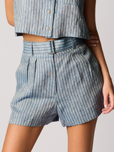 Designed in our signature 100% soft-to-touch hemp, the relaxed, yet tailored Zinna Short is anchored by a structured waist and self-fabric belt. Gold hardware and symmetrical front pleating complement the A-line silhouette.