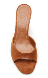 The Brigitte mules epitomize effortless elegance with their refined round-toe design crafted from luxurious suede. Featuring a low, woven wedge heel, these Italian-made slip-ons transition seamlessly from day to evening.