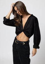 Stillwater - Knot Front Long Sleeve Shirt - Black