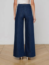 Meet Pacey—a polished high-rise jean designed with a wide 2” waistband. The Pacey sits at the natural waist, runs fitted through the hips, and drapes into a dramatic wide leg. The perfect desk-to-drinks jean for a clean, pulled-together look. Now back in a clean dark wash.