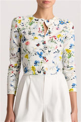 A little cardigan with a lot of personality. Carson is cropped, close-fitting, and adorned in colorful florals . The 100% cotton construction is soft to the touch and hugs the body just right, while the shrunken silhouette keeps things fitted and flirty. Preppy, playful, and unexpectedly cool.