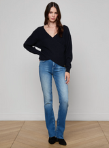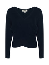 The epitome of cozy chic. Crafted in a dark midnight blue knit, it drapes effortlessly across the body with a deep V-neckline and overlapping front panels. The Antonella sweater brings effortless elegance to every look, from off-duty to evening.
