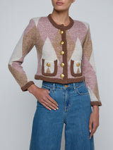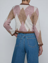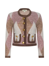 The Siobhan cardigan brings a bold, feminine edge to classic knitwear. Crafted in an argyle knit with defined shoulders and front patch pockets, it’s finished with gold buttons that add a touch of glam. A statement layer that blends comfort with unmistakable style.