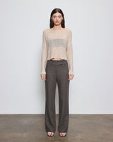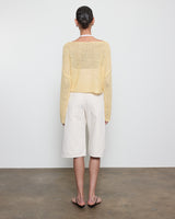 An open-knit pure linen sweater with a classic bateau neckline and waist-length cut. Relaxed fit through the body.