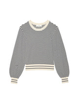 The Striped Knit Sweater is crafted from a blend of eco-ver modal and high-twist cotton, featuring a soft bubble sleeve with blouson volume and a ribbed hemline.