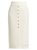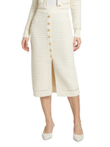 Polished and comfortable, this knit pencil skirt is crafted from a luxurious pointelle knit. The button-front design adds a chic touch, while the body-slimming silhouette flatters without being too compressive.