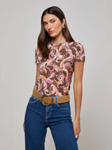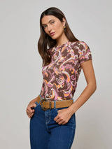 In a soft, supple fabrication and slim cut, Ressi is our most flattering short sleeve tee. Reimagined in new prints and colorways every season, she’s a L’AGENCE favorite year after year. Now in an abstract swirl print.