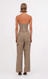 The Maya Bustier is a structured, strapless top designed for a bold yet flattering look. Featuring a sweetheart neckline, zipper in the back and gold button detailing down the center, it’s made from structured cargo fabric in our seasonal moss color. Exuding effortless cool-girl style, it pairs perfectly with the matching Walker Pant for the ultimate look.