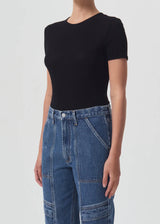 Your newest, must-have closet staple. Crafted from our ultra-soft, lightweight rib, the Abbie Tee fits close to the body with a slightly cropped fit and slim short sleeves, Wear tucked into your favorite denim for a sleek, flattering silhouette.