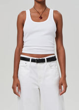 The Faye Tank is a foundational wardrobe piece, crafted from soft, breathable organic cotton for effortless wear. Featuring a slightly cropped fit and a flattering U neckline, its minimalist design makes it the perfect pairing for everything from high-rise jeans to skirts, seamlessly transitioning from day to night with ease.