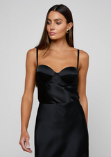 The evolution of our signature silk camisole, thoughtfully constructed with underwire cups to shape and support the figure—and eliminate the question of what to wear underneath. The Orlina is an all-season essential in timeless black.