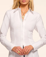 Elevate your wardrobe with the Steph, a tailored stretch cotton poplin top with a classic button down detail and feminine fit. Style this top for the office, or dress it up for dinner plans.