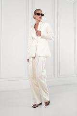 The Seraphine Blazer redefines tailoring with a sculpted silhouette and subtle edge. Designed with a clean three-button front, it draws in at the waist for a flattering line while a structured back overlay adds unexpected dimension. It’s a statement piece that moves effortlessly from day to night.