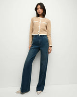 Mod, made modern. Expertly tailored from textured stretch cotton, the Beale is a collarless lady jacket with a boxy fit and cropped silhouette. Bold contrast-color trims and double chest pockets add graphic allure.