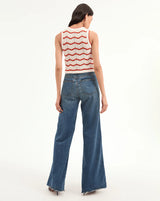 A fresh take on the classic tank. Expertly crafted from a stretch-cotton blend, the Jerrel's cropped, crew-neck silhouette is defined by a striking open-knit blue and white chevron pattern. Ribbed trimming at the neck and hems completes the look. Wear this knit tank top solo or as a versatile layering piece—it pairs especially well with the coordinating Ansonia cardigan.