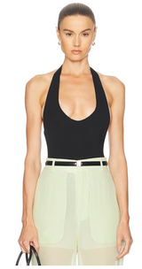 The Bamboo Halter Bodysuit embodies sleek sophistication with its form-fitting silhouette and ultra soft fabric. A flattering plunge scoop neckline complete with a thong strap bottom, this bodysuit ensures a seamless and comfortable fit, that transitions from day to night.