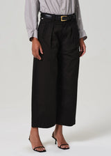 The Cara Cropped Pleated Trouser is a modern take on tailored ease, crafted from luxe, lightweight twill. Designed with expertly placed pleats to create a voluminous yet tapered leg, this cropped silhouette offers the perfect balance of structure and movement. Style it with a fitted tank and sandals for effortless sophistication or pair it with an oversized shirt for a relaxed, polished look.