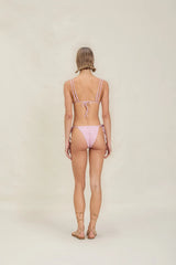 The Lais is an underwire top, with adjustable back tie and shoulder straps, and spaghetti detail at the center front