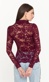Bold and unapologetic, the Dominique Lace Top is a sultry standout in vibrant crimson. Crafted from delicate floral lace with a collared neckline and button placket, this fitted long-sleeve top balances romance with modern edge. Style it with tailored trousers for a night out or layer under a blazer to add a pop of color to your power look.