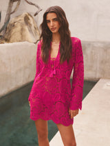 The perfect little cover-up dress, the Ansley is updated with intricate paisley lace, flared sleeves, and a playful tassel tie—effortlessly chic from beach to brunch.