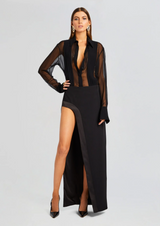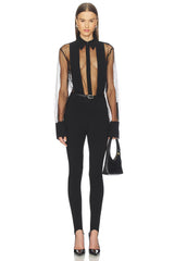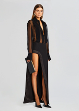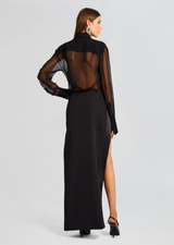 An elegant silk-panelled transparent blouse. A delicate fusion of understated refinement.