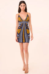 Maita is a figure-hugging, of-the-moment bodycon stretch knit dress in a standout Butterfly Jacquard print. Designed with a deep V neckline, delicate spaghetti straps, and a flattering mini length, it’s fitted all the way through for a striking, head-turning silhouette.