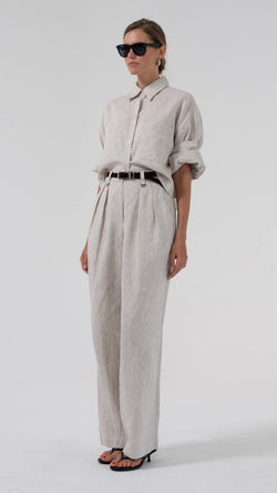 Effortlessly elegant, our Romy Pants feature premium 100% linen construction with a relaxed wide-leg silhouette. These sophisticated trousers drape beautifully against the skin, offering breathable comfort while maintaining a refined aesthetic. Perfect for elevating both casual and formal ensembles with timeless appeal.