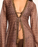 Some dresses catch light - this one creates it. The Fatima turns every breeze into a performance with its bell sleeves and metallic zig-zag pattern. Slip it on for sunset drinks, keep it on as stars emerge. Warning: may cause spontaneous dancing.
