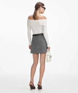 Rendered in ribbed knit for a sculpted feel, this body-hugging top is a versatile yet polished staple. Show off its wrapped off-shoulder neckline with our statement earrings for girls’ night out.