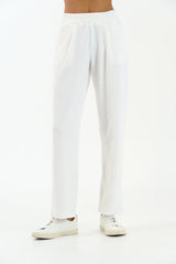 The Pasha pants have an easy casual fit with a straight leg fit and an elastic waistband with a mid-rise. Made in cool and cozy crinkle french terry.
